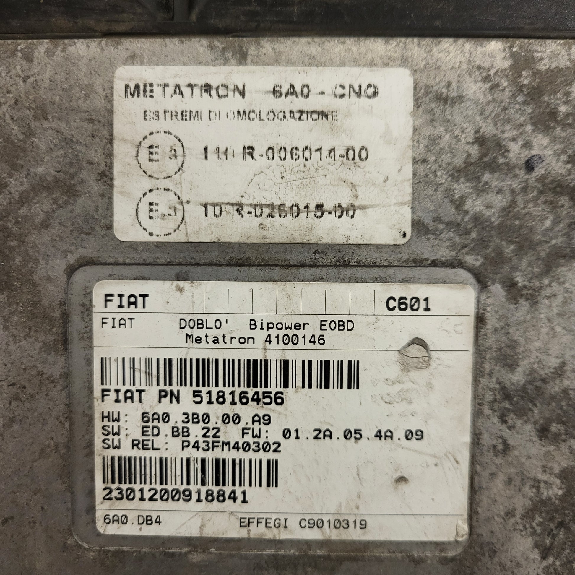 FIAT DOBLO BIPOWER ECU / 51816456 / 4100146 / 6A03B000A9 / METATRON